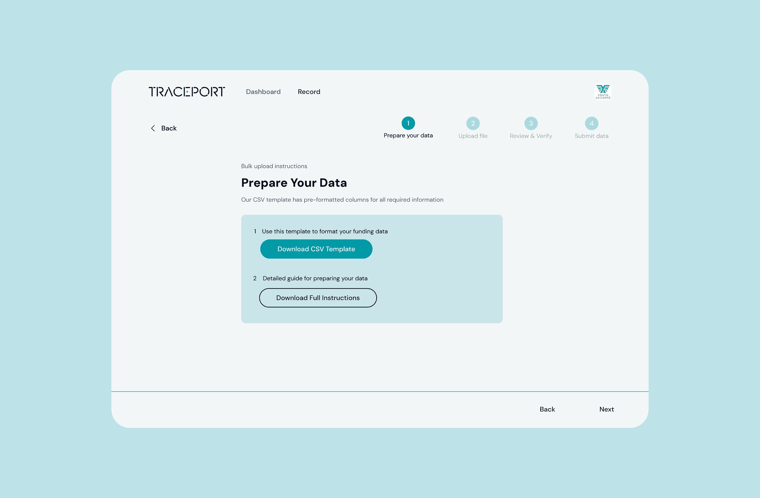 Conduct lightweight research and designed the full Charity User MVP including: Dashboard, Record, Manual and Bulk Upload flows, and Export Report, within a 4-week sprint.